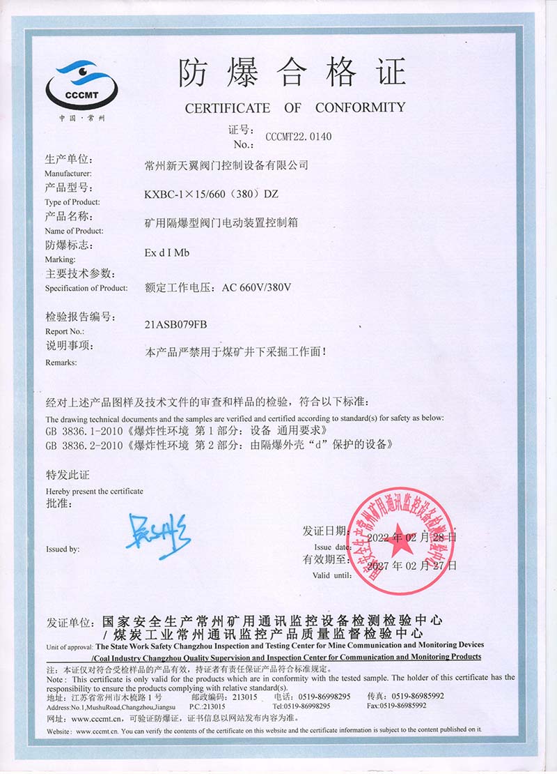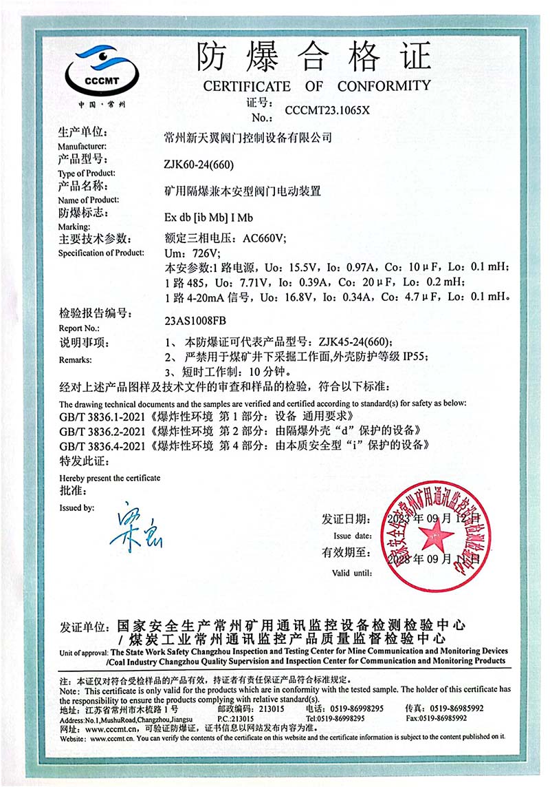 ZB20-24 200(660) 防爆合格證